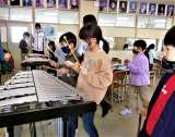 星空を思い描きながら、音づくりを楽しむ1年生。音楽室は、いろいろな楽器の音色で...