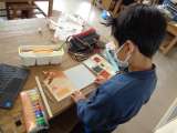 図画工作科で掲示板づくりに励む5年生。 作成途上の作品を見ると、どの作品にもその...