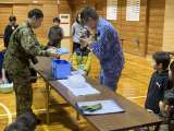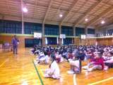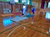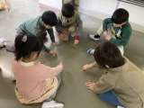 ボールを使ったゲームに挑戦。中央のかごにボールを入れるチーム、それを阻止するチ...
