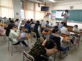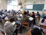 いよいよ班ごとに作成したプレゼンを英語で行っています。 ALTの先生が、教科書の...