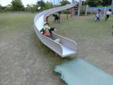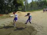 天候がよくなったので、グラウンドで遊びました。思い切り遊んで、みんなとびきりの...