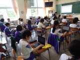 班ごとに今日の活動を振り返りました。班のみんなとの仲が深まったことや、協力して...