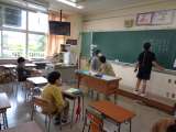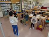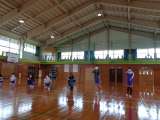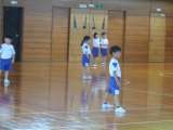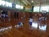 体育館で体をめいっぱい使って、ジャンケンをしました。ステージにいる先生とジャンケ...
