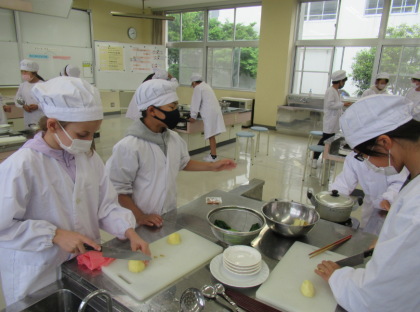 5年家庭「じゃがいもと小松菜をゆでよう」