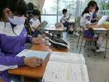 6年生は、コンピュータ室で情報収集中。国語科「私たちにできること」の学習を充実...