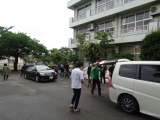 晴れた日には、いつも正面玄関前で始まるジャンケン。 2年生が、鬼ごっこの鬼を決め...