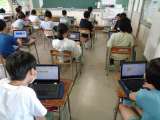 宿泊学習の振り返りを行っています。 全員で一心にPCに入力しています。友達の記述...