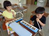 鍵盤ハーモニカで「かえるのうた」のカノンに挑戦しています。 ペアで互いの音を聴き...