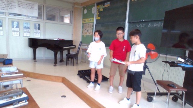 音楽科の学習では、和音についての学習をしています。今日は、一人一人にトーンチャイムを渡し、音を出しながら自分の好きな和音を探しました。最後には、自分が感じた美しい和音を紹介しました。