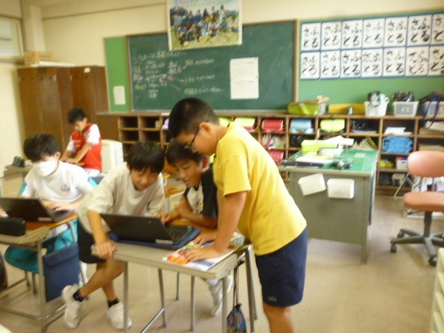 5年生は、社会科の学習の中で、一人ひとりが課題を設定し追究しています。昨日はその成果を端末上で共有し、もっと知りたいと思う友達のそばに移動するなどして積極的に質問していました。