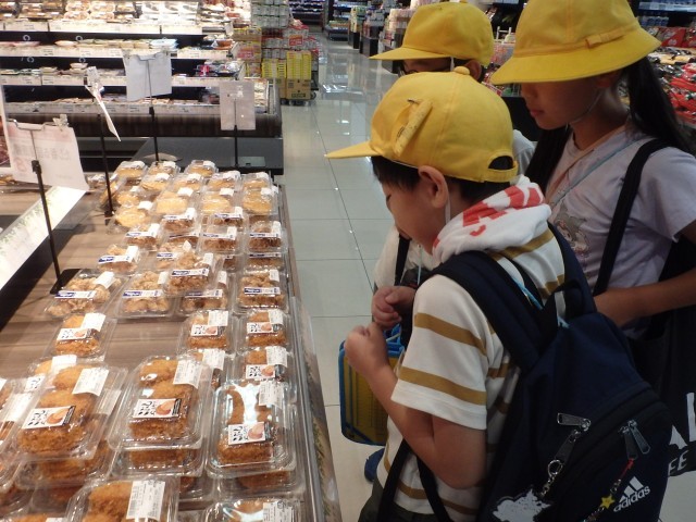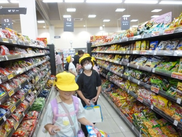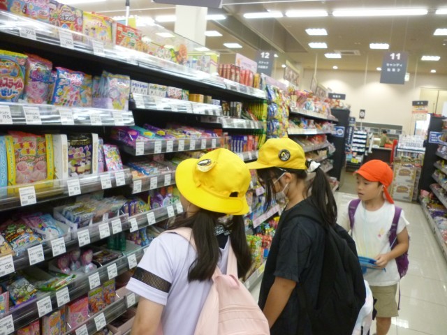 買い物体験を兼ねて、グループで売り場を見て回る時間がありました。同じ商品でもたくさんの商品が並んでいます。看板を頼りに広い売り場でどこに商品があるのか、探すだけでも時間がかかりました。お目当ての商品が見つかると、とても嬉しそうにしていました。