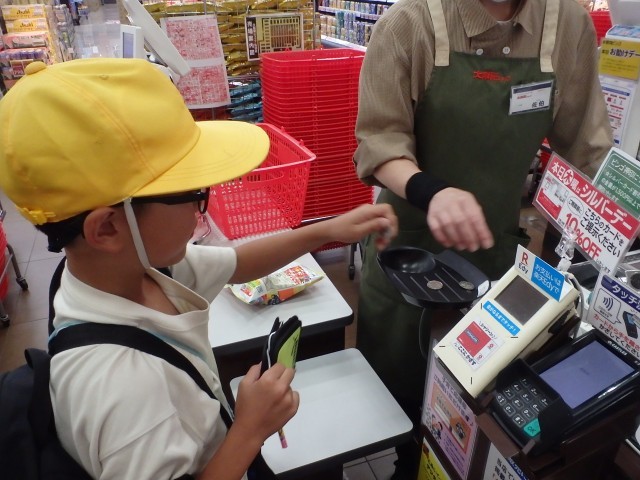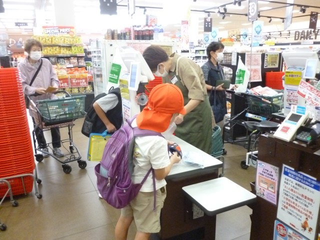 最後は、買い物体験をしました。お金が足りるように一生懸命計算し、決まった子からレジで精算し、どの子も上手に買い物することができました。営業中にもかかわらず、お店の方に温かく親切に案内していただいたり、声をかけていただいたりして、子供たちにとってはとても貴重な体験となりました。ご協力いただいたお店の方々、ありがとうございました。