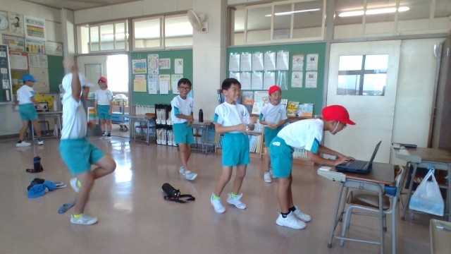 それぞれのグループごとに、動画を見ながら曲に合わせて振りを練習しています。