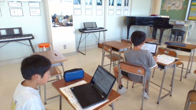 学習発表会が近付いてきましたが、学習もがんばっています。理科では、流れる水にはどのようなはたらきがあるのか考えています。音楽科では、和音の移り変わりに合った旋律をクロームブックを活用してつくりました。
