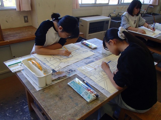 「奥の方が、色が暗くなっている」「近くの方が大きく、遠くの方が小さくなっている」など、奥行に気を付けて描き進めています。