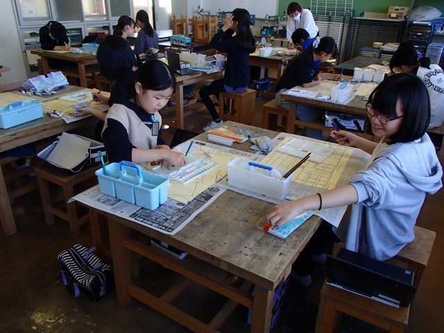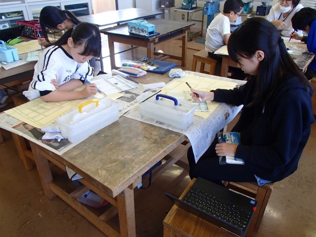 図画工作科の学習では、「わたしの大切な風景」と題して、6年間過ごしてきた寒江小学校の中で思い入れのある場所を絵にしています。