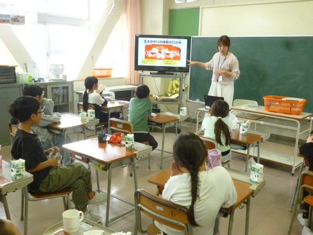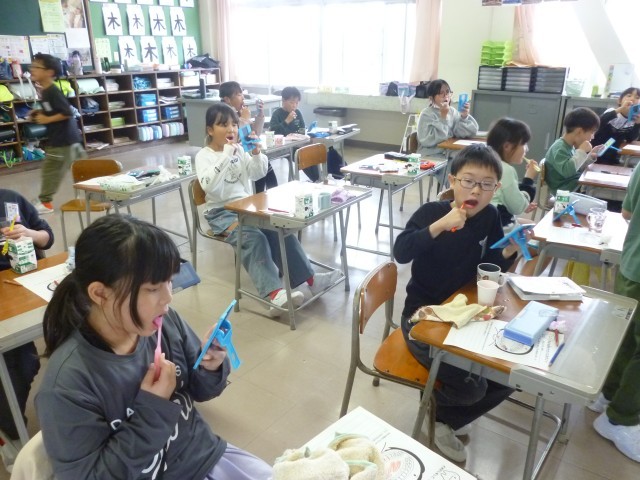 今日は養護教諭の歯みがき指導がありました。3年生の子供たちは、歯の生え変わりが頻繁にある年齢です。自分の歯並びに合わせた歯のみがき方について学習しました。鏡で自分の歯並びを見ながら、みがきにくいところを探したり、染め出しをしてみがき残しがあるところを確認したりしました。みがきにくいところをどうやってみがいたら、きれいになるかなと考えながら、歯ブラシのあて方やみがき方を工夫しました。最後はとってもきれいな歯になって嬉しそうでした。学んだことを日々の歯みがきでも実践できるように声かけしていきたいです。