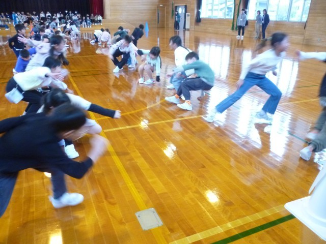 今日は全校運動で「ねことねずみ」というおいかけっこをしました。2人組になってねことねずみを決め、ねこかねずみか呼ばれた方が逃げるというゲーム性のある運動です。呼ばれなかった方は相手を全速力で追いかけます。短い時間でしたが、どの学年も楽しく運動することができました。