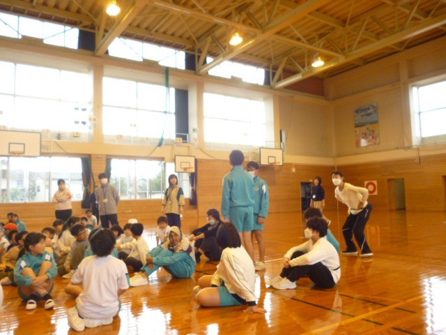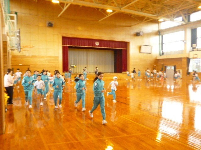 昨年度まで、低中高学年で決められた周数を走り、たすきをつないだ「たすきリレー集会」を行ってきました。しかし、学年に関わらず、自分の体力に応じた目当てをもって練習に取り組む姿を目指し、今年度は一定の時間でどれだけ走ることができるかに挑戦する「笑顔で楽しくGOGOGO集会」に変更することにしました。初めて2分間走に取り組んだ後の振り返りの場では、「外から追い抜くことができてよかった」「同じペースで走ることを心がけた」と、子供なりの気付きや達成感を得ることができたようです。