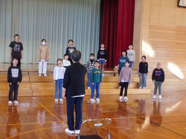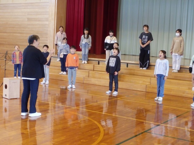 10月28日(火)連合音楽会に向けて、外部の講師を招いて練習を行いました。講師の先生から「ありがとう」という場面を思い起こすよう助言があり、実際に声に出して「ありがとう」と言ってみました。誰にありがとうと言いたいか、思い浮かべて出だしの「ありがとう」という歌詞を歌ってみよう、きれいな声で歌おうと、一人一人が心に留めて意識するだけで、歌声はどんどん変わっていきました。最後は、一人一人がこの歌をどんなふうに歌いたいかイメージすることの大切さを教えていただきました。連合音楽会当日は、自信をもって寒江っ子の素晴らしい歌声をホールいっぱいに響かせてほしいです。