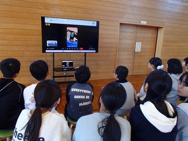10月30日に3回目のマレーシア交流が行われました。今回の交流は、教室を飛び出し、学校ツアーとして他の学年の授業の様子をマレーシアの人達に見てもらいました。マレーシアのみんなにどの教科を見せたら日本のことをよく知ってもらえるかを考え、各学年に生活科、国語科(漢字)、書写、音楽科、家庭科(調理実習)で授業をしてほしいと6年生自らお願いしていました。また、マレーシアのみんなと一緒に「進化じゃんけん」を行いました。Meetでの交流でしたが、リアルタイムで一緒に活動することができ、大満足の交流となりました。終わりに、マレーシアの学校の様子も見せたもらうことができ、日本との共通点・相違点を映像で知ることができました。