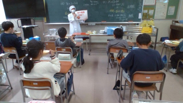 今日は、栄養士さんが5年生教室に来られ栄養についてお話していただきました。先日、家庭科で5大栄養素について学んだばかりだったので、それぞれの働きについてより理解を深めた様子でした。