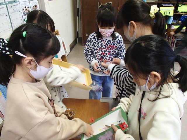 生活科の時間に、お店の人とお客さん役に分かれて「あきまつり」のリハーサルを行いました。リハーサルを通して、お客さんに遊び方やルールを説明したり、楽しんでもらえるように盛り上げたりするイメージができたようです。来週は、いよいよ各学年に招待状を届けに行きます。