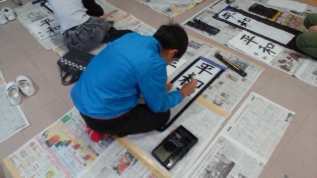 書初めの練習が始まりました。心を落ち着かせて、一文字一文字集中して書いていました。