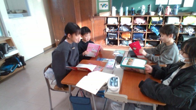国語科の学習では、詩の工夫について学習しています。今日は、自分でつくったオリジナルの詩を友達に紹介しました。
