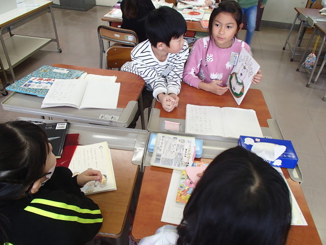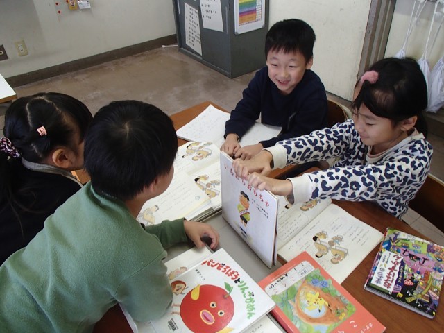 【1年生】国語科「くわしくきこう」 公開日 2026/01/29 更新日 2026/01/29 1年 国語科「くわしくきこう」の学習で、自分がすきなお話について友達と紹介し合いました。聞く人は、ただ聞くだけでなく、友達の話を聞いてもっとしりたいと思ったことを質問しました。紹介の後には、友達が選んだお話を手に取って読む姿がたくさん見られました。 校長室 1年生 職員室 保健室
