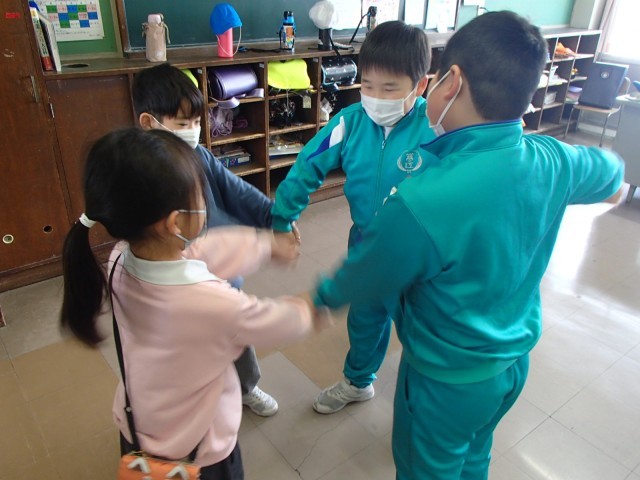 2年生は、音楽科の学習で「ずいずいずっころばし」、「あんたがた どこさ」、「なべなべ そこぬけ」をしました。子供たちは仲良く円になり、音楽に合わせて遊んだり、自分だけの動きを考えてリズムに合わせて踊ったりしました。