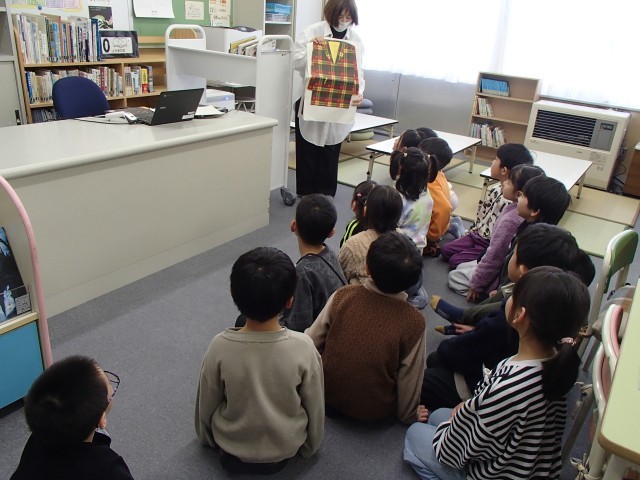 司書の先生に読み聞かせをしていただきました。絵本を読む前に、その絵本の導入となる素敵なお話をしてくださり、みんな、のめり込むように聞いていました。