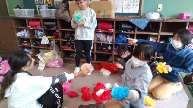 4年生は、卒業する6年生や入学してくる新1年生のために掲示する花を作っています。