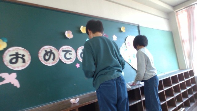 4・5年生で協力して、卒業式のための前日準備を行いました。今までお世話になった6年生のために、時間いっぱい自分にできることを考えて取り組みました。