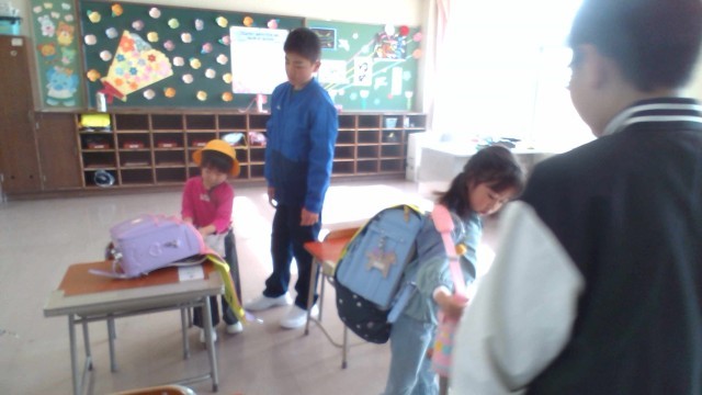 6年生は、毎朝チーム毎に1年生教室へ行き、朝の準備のお手伝いをしています。今日は、1年生に読み聞かせを行いました。