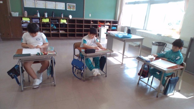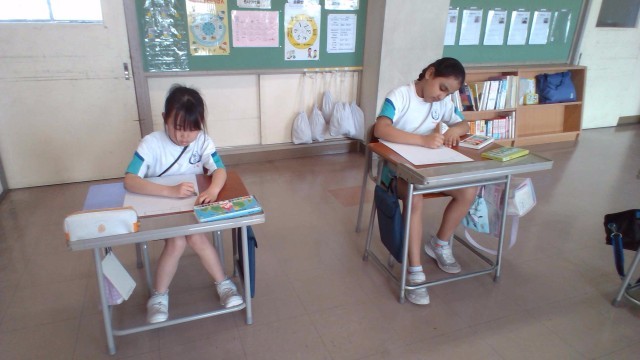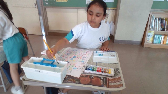 絵の具+水+ふで=いいかんじ!と題して、3年生で初めての図工をしました。