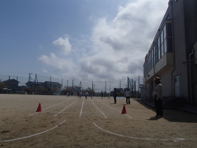 今日は、今年度初めての全校運動でした。スポーツ委員会の進行に従い、50m走を行いました。