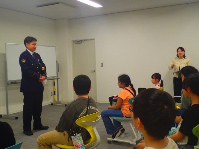 初めに呉羽交番の所長さんから、自転車のルールを守ることは、自分だけでなく周りの人も守ることにつながるというお話を聞きました。