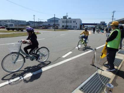 実技走行では、講習で習ったことを生かして、横断歩道で自転車を降りたり、車が来ないかしっかり確かめたりしました。