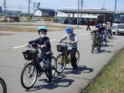 本日、自転車に実際に乗ってみて、タイヤの空気が入っていなかったり、足が地面につかない自転車に乗っていたりして、困っているお子さんの様子が見られました。今回の自転車教室を機に、家族でもう一度点検してみてはいかがでしょうか。