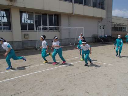 新しい団が決まり、運動会に向けてリレーのバトンパスの練習を行いました。子供たちは、昨年度に練習したことをよく覚えており、大きな声で「ゴー」「ハイ」とかけ声をかけながら練習に取り組んでいました。また、自分たちで「3番と6番の人、練習するよ」「今のバトンパス、よかったよ」「どんどんやりたい人、やってね」などと言いながら練習を進めている様子が最高学年らしく感じました。どの団もとてもよい雰囲気で練習をしており、見ている方が気持ちよくなりました。