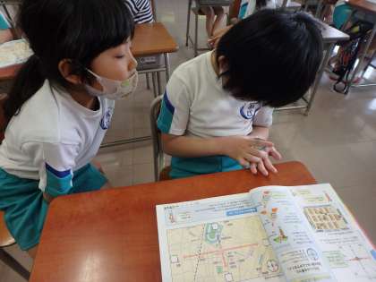 社会科では、方位磁針の使い方、そして方角を学習しました。