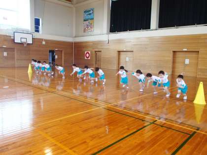 体育では、50メートル走のスタート練習をしました。「位置について」で構える姿勢、また体を低くしてスタートをきる練習をしました。