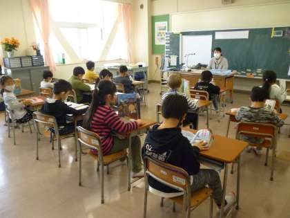 今年度は、なかよしタイムと3限の間に読書タイムを設定しました。元気に外で遊んだ後、気持ちを切り替えて静かに読書しています。先生方も子供たちと共に本を読みます。毎日10分間ですが、静かに本に向かう時間の積み重ねを大切にしていきたいと思います。