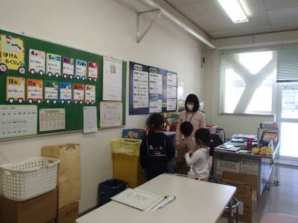 生活科では、「がっこうの なかの ひみつを みつけよう」を学習しています。今日はグループに分かれて、それぞれの場所でみんながまだ知らないひみつを見付けてきました。お友達には、まだ内緒です。次は、画用紙にまとめ、クイズ形式で発表会をする予定です。