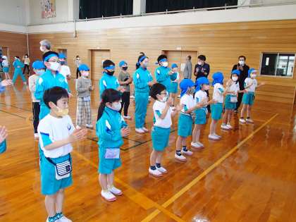 また今日は、運動会の結団式がありました。そのあと団ごとに分かれ、5、6年生に応援のエールを教えてもらいました。