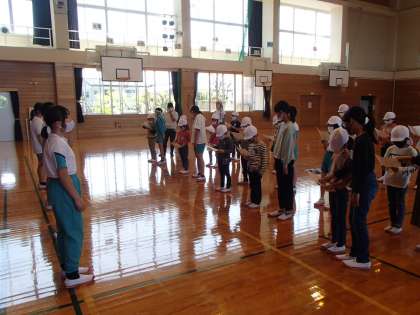 応援合戦の練習が始まりました。どの団も5、6年生が中心となり、練習を進めていました。下級生が理解しやすいように分かりやすい言葉で話したり、がんばっている部分を褒めたり、難しい部分を繰り返し練習したりするなど、どの団も工夫しながら進めていました。しかし、まだ恥ずかしい気持ちや照れてしまう気持ちも見られ、本来の力が発揮されていないようにも感じました。これからです。「絶対勝ちたい」という思いをもち、全力で取り組む姿を期待しています。