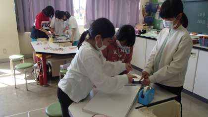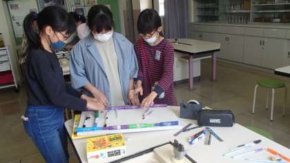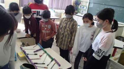 コンピュータ・科学クラブでは、ビー玉転がしをしました。どのようにしたら、できるだけビー玉をゆっくり転がすことができるのか、どの班も試行錯誤する姿が見られました。