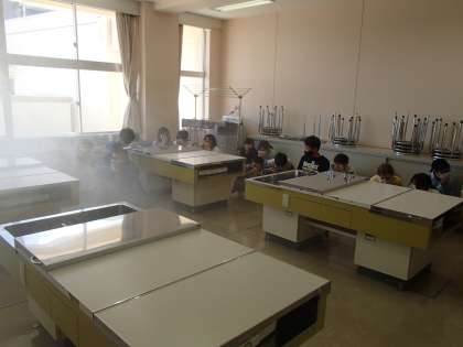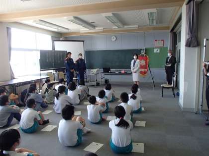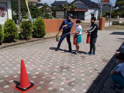 呉羽消防署の方に来ていただき、防火教室を行いました。まず、防火に関するDVDを見て、その後、煙体験や紹介の使い方の学習を行いました。子供たちは、煙が上に上がっていくことは知識として知ってはいたのですが、実際に煙を出しての体験では、本当に上の方は煙で何も見えず、床に近い方が見えやすいということを身をもって実感していました。また、思いもよらないところから火が出てしまう怖さも感じていました。火事は、一瞬にしてすべてを奪ってしまいます。自分や大切な人の命を守るため、避難訓練等、自分でできることをしっかりしていってほしいです。