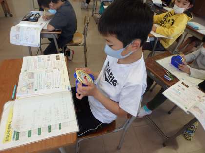 模型の時計を使って、実際に動かしながら時刻を答えることで、理解度が増しています。